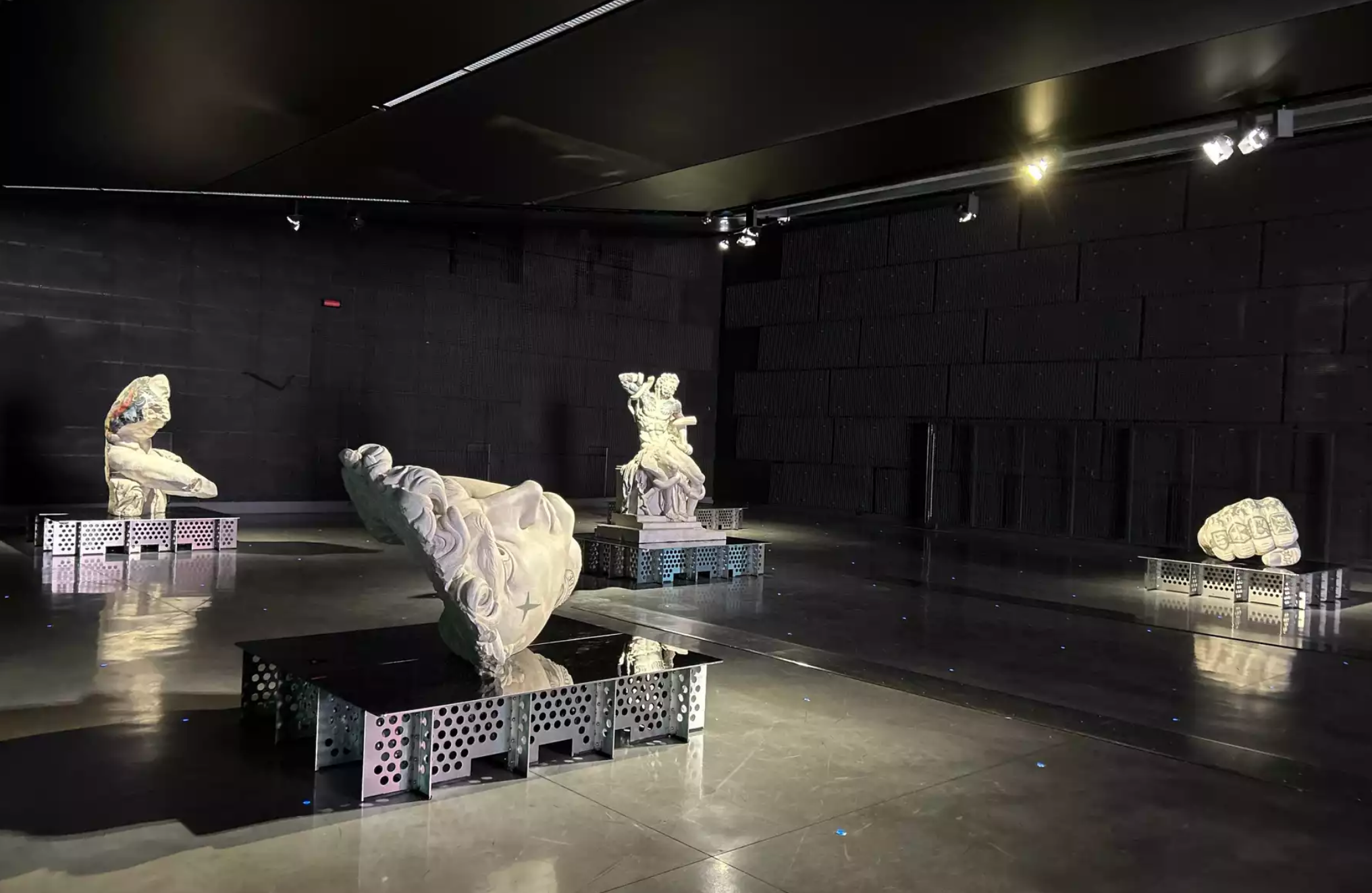 L’installazione di Malpensa mostra opere monumentali di Fabio Viale decorate con tatuaggi tipici di criminali russi o con Irezumi giapponesi, come: Yours will be ours (2022), replica del pugno di una statua romana, Venus (2017), un riferimento a la Venere di Milo, Laocoonte (2020) e Torso Belvedere (2020) che rimandano agli originali esposti ai Musei Vaticani, Souvenir David (2018), un’imponente testa ispirata alla celebre scultura di Michelangelo.