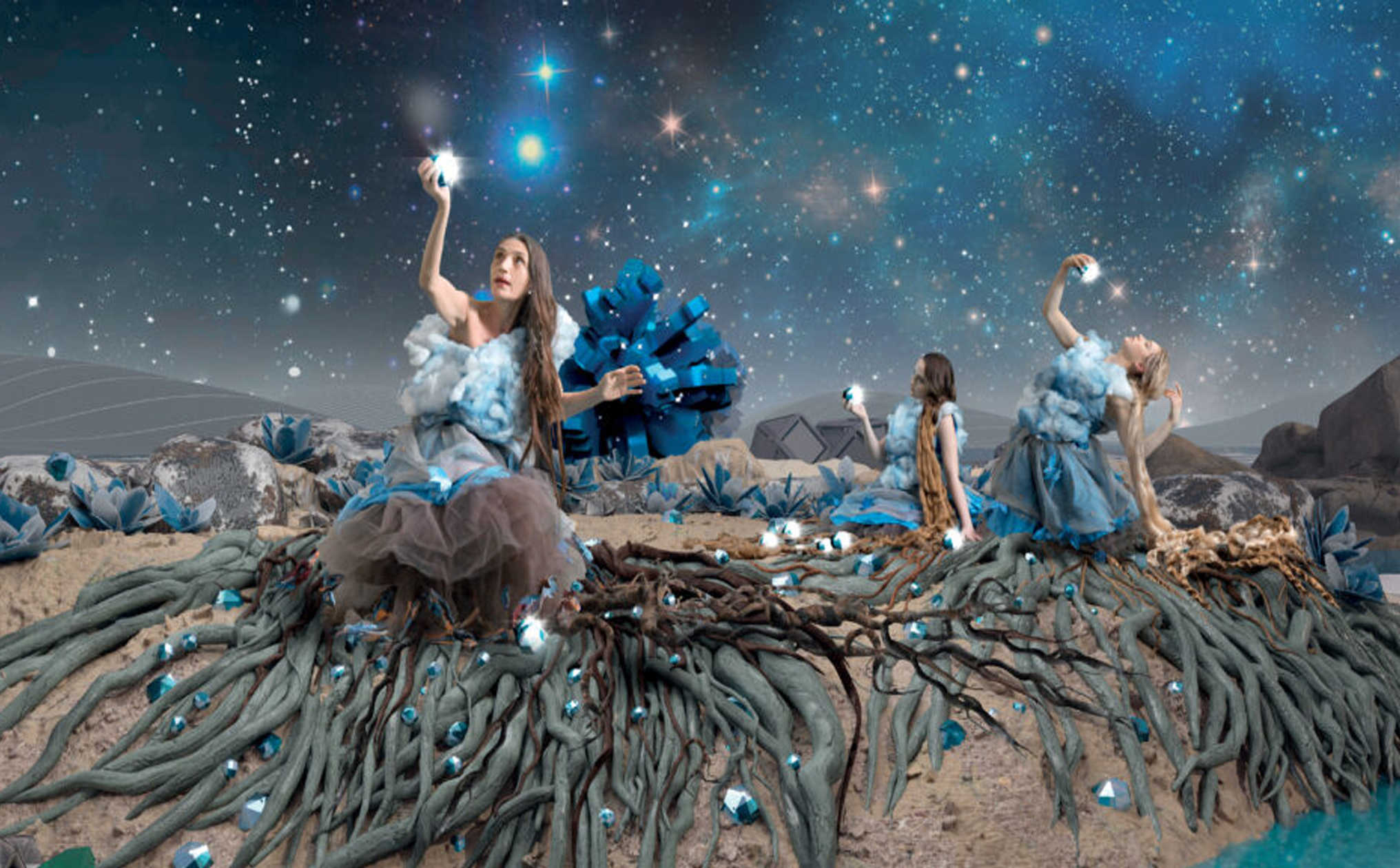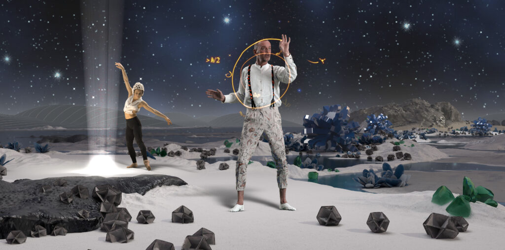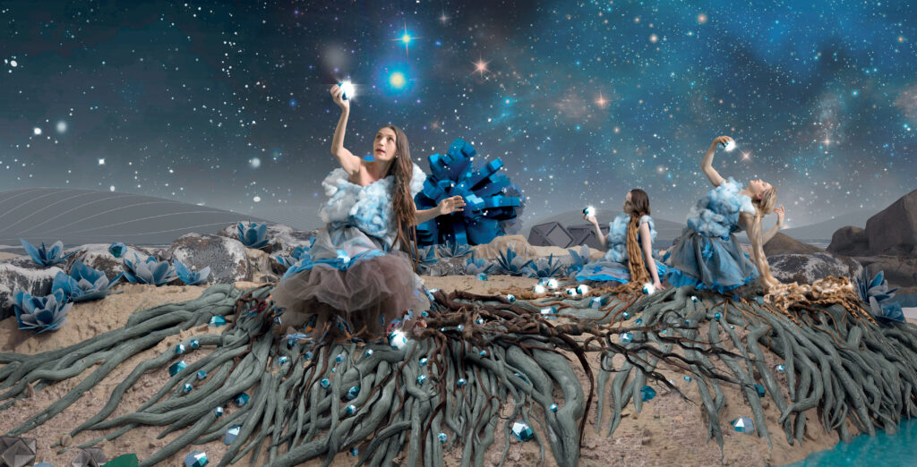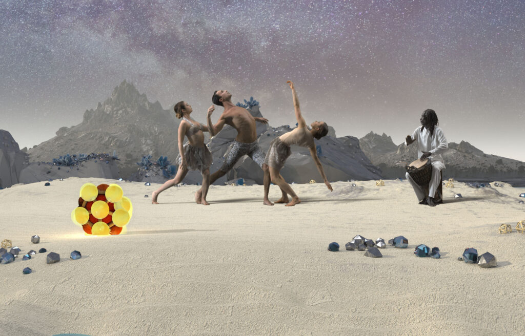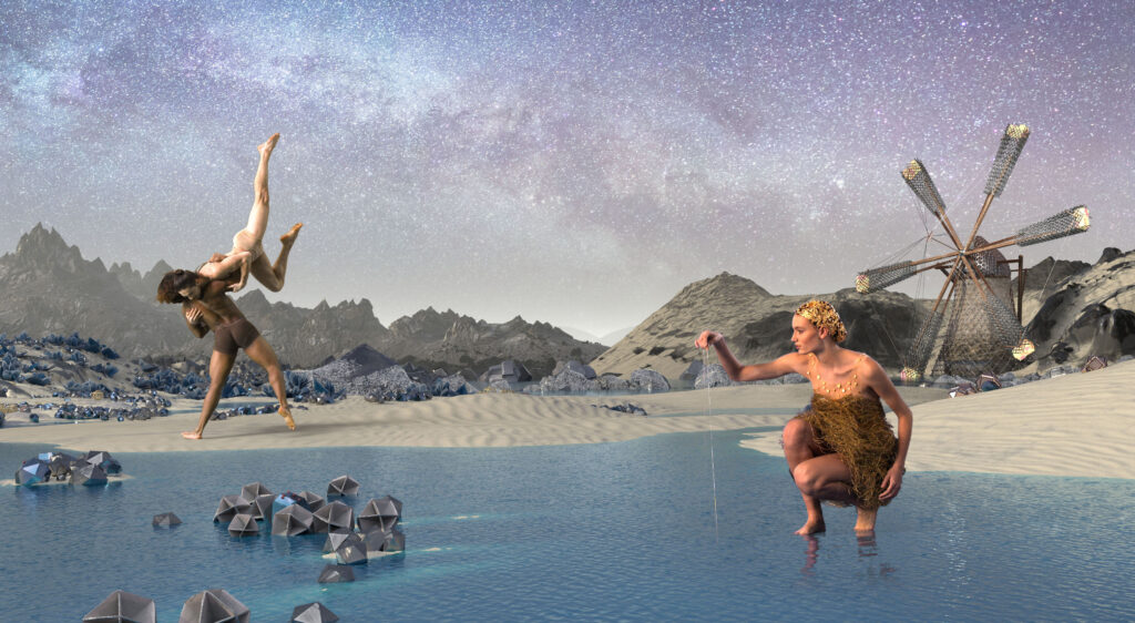 Giuliana Cunéaz’s filmic work, created using the most sophisticated technologies, combines cinema, dance, theater, and performance. Within this highly evocative piece, real figures move through entirely reimagined 3D landscapes. The result is a grand tableau exploring nature’s regenerative power through a slow journey from darkness to light. The Seekers of Light, carrying a profound social and ecological message, represents cutting-edge research in technical experimentation.